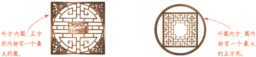 3 中国建筑中经常能见到“外方内圆”和“外圆内方”的设计。下图中的两个圆半径都是1m,你能求出正方形和圆之间部分的面积吗?