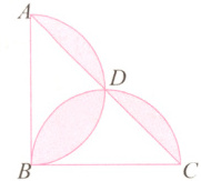 16*. 右图是由两个相同的半圆叠拼而成的。已知三角形ABC是一个等腰直角三角形,AB=BC=10 dm。图中涂色部分的面积是多少平方分米?