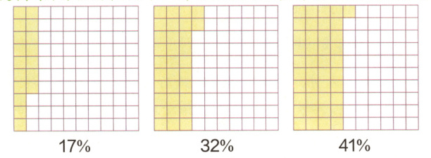 提示:每个方格纸有100个小格,根据百分数的含义,数出相应的格数,涂色即可。