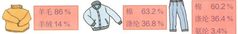 1. 读出下面服装中各成分的百分数。