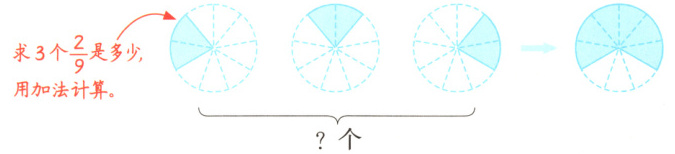 1 小雅、爸爸、妈妈一起吃蛋糕,每人吃$\frac{2}{9}$个,3人一共吃多少个?