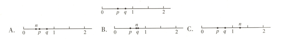 由题图可知,p<1,q<1,所以p÷q>p,所以A选项错误;又因为p<q,所以p÷q的值不可能大于1,所以C选项也错误。