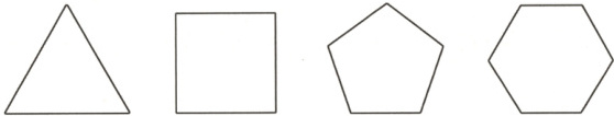 下面每个图形中每条边长都相等(正多边形)。画出它们的对称轴,并猜一猜正十二边形有(