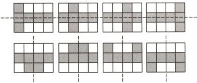 第二关:在下面各图中添加两个小正方形,使补画后的图形成为轴对称图形。
