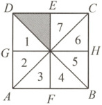 答:阴影三角形分别与三角形1、3、5、7可以组成轴对称图形,它们分别以直线BD、直线GH、直线AC和直线EF为对称轴。