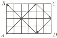 有一个台球桌(如下图),一个球以$45°$角从左下角顶点$A$处出发,当球击中桌边后就会以$45°$角反弹。请补充完整这个球的路线图,这个球最终会进入顶点(