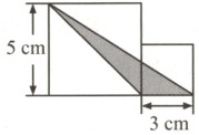 解题思路:观察图形,先判断其底和高的长度,由于该三角形的一条边与小正方形的边重合,所以底边长为小正方形边长,即$3\ cm$;而其高是从底边相对顶点向底边作垂线,此长度恰好等于大正方形边长,即$5\ cm$。再根据三角形面积计算公式算出阴影部分的面积。