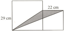 图中两个正方形的边长分别是$29\ cm$和$22\ cm$,则图中阴影部分的面积是多少平方厘米?