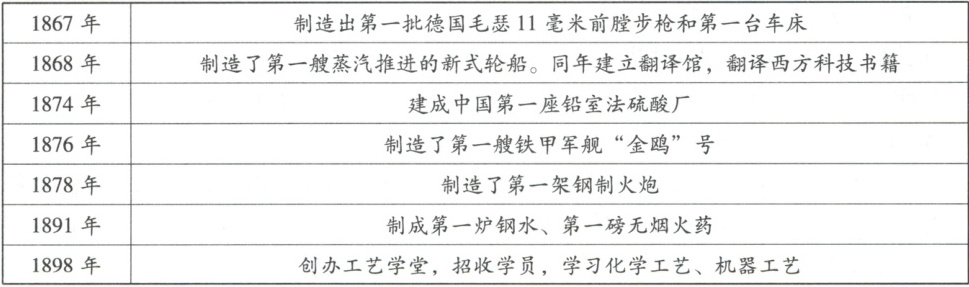 (2)引进了资本主义国家的机器生产技术和工厂制度,是中国早期现代化的尝试;对外来侵略起到了一定的抵御作用;传播了西方近代科技;培养了新式人才;推动了早期民族资本主义企业的产生。