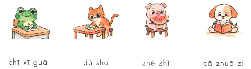 chī xī guā dú shū zhé zhǐ cā zhuō zi
