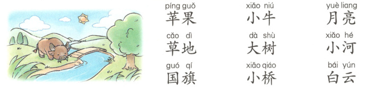 ●用 “ ” 画出和图片有关的词语,再选几个词语写句子。不会写的字用拼音代替。 〔甘肃〕