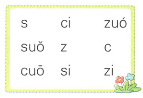 四、1. 示例:zǐ cì(答“zhī”也可) huā guā(答“xiǎo、miàn、zhuāng”也可)
