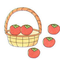 买 了 一 篮 红 柿 子,回 到 家 里 吃 柿 子。