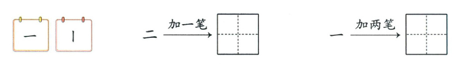 二本课学了两个笔画。用上它们,加一加,变新字。