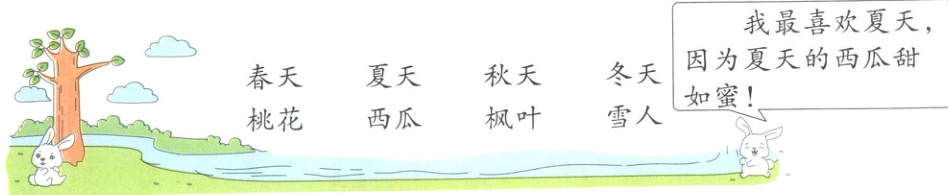 四、示例:春天 桃花开了 秋天 枫叶很 漂亮