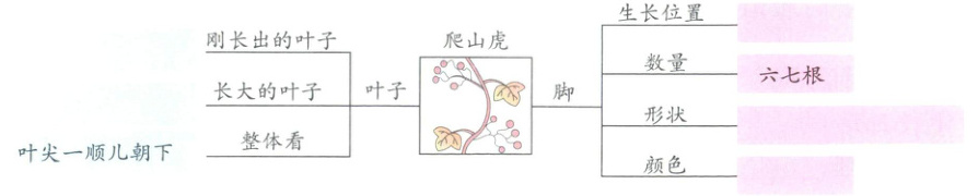 1. 那些叶子绿得那么新鲜,看着非常舒服。叶尖一顺儿朝下,在墙上铺得那么均匀,没有重叠起来的,也不留一点儿空隙。