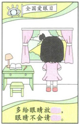 示例:海报中的小女孩在学习了一会儿之后,就朝窗外看看外面美丽的景色,这样可以缓解眼睛疲劳。