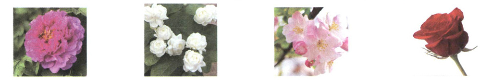 2.句中提到的花你都认识吗?给图片选择对应的花名。(填序号①②③④)