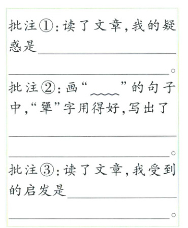3. [ 品读感悟 ]读文章时,在写得好、有疑问、有启发的地方都可以作批注,这样可以加深对文章的理解。请结合提示,把文中的三个批注补充完整。