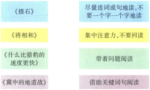 一 将本单元课文与对应的主要的提高阅读速度的方法连线搭配,再填空。
