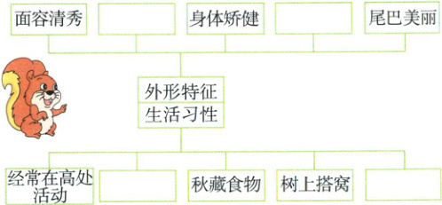 窄。松鼠还十分爱干净,它们会用爪子和牙齿来 shū lǐ(梳理