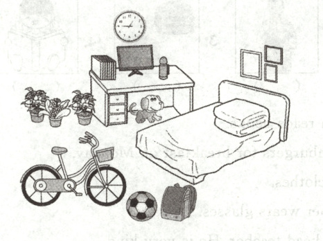 十、根据图片写一篇题为“My room”的短文,请写出物品所在的位置。参考所给的词汇和句型。(10分)
