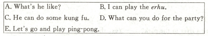 Ⅷ. Read and choose. (两位营员在讨论成长营结营仪式上的联欢会,请补全他们的对话。)(每小题2分,共10分)