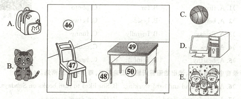 九、读一读,根据短文内容,把物品放在相应的位置上。(10分)