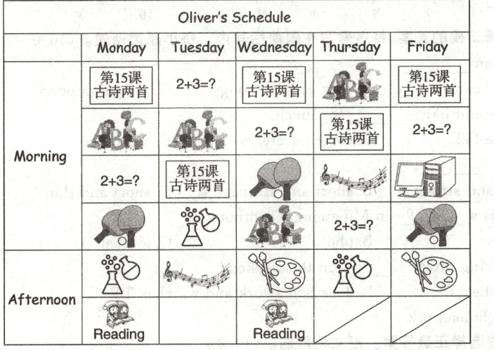 (二)根据课程表,判断下列句子是否与其相符。相符写“T”,不相符写“F”。