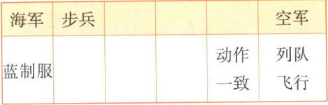 1.根据阅兵式的出场顺序和描写角度,把下面的表格补充完整。