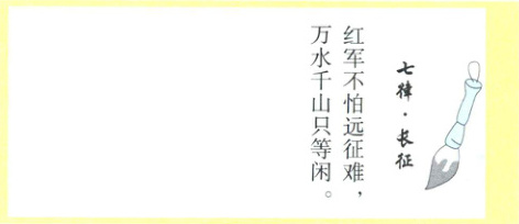 四 长征是人类历史上的伟大奇迹,班级书法组准备开展以“长征”为主题的书法作品展,在行行文字中回顾长征历程,赞颂长征精神。请在书写纸上认真书写《七律·长征》,要求格式正确,书写整齐美观,注意落款格式。