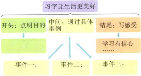 二、示例:1. 习字让我的生活更美好 因临帖不顺利而郁闷 受老师鼓励后坚定 因取得进步而开心 2. 读书有许多好处 读书能增长知识 读书能开阔视野 读书能陶冶情操 书像朋友陪伴着我成长