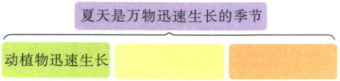 2.夏天自然事物的生长:草长,树木长,山是一天一天地变丰满。稻秧长,甘蔗长,地是一天一天地高起来。水长,瀑布长,河也是一天一天地变宽变深。