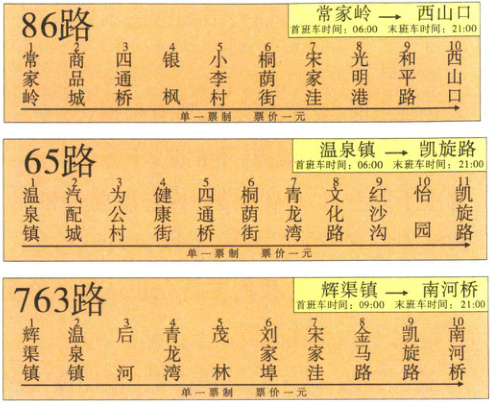 C.先坐65路公交车,由温泉镇到桐荫街,然后坐86路公交车,由桐荫街到宋家洼。