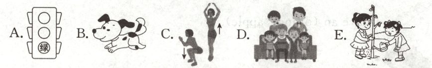 十、Miss White 检查句子掌握情况第三关,读句子,选出合适的图片。(5 分)