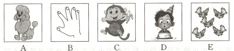 二、根据句子选择正确的图片,并把图片编号填写在对应句子前面的括号内。(每小题2分,共10分)