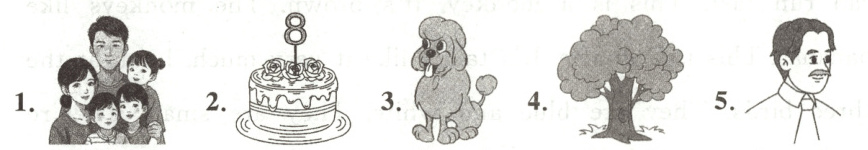 Ⅱ.Listen and judge.(在去往生态园的大巴车上,Xiao Jin在给Amy看自己的画册。听录音,根据Xiao Jin的介绍,判断下列图片是否正确,正确的画“√”,错误的画“×”。录音读两遍。)(每小题2分,共10分)
