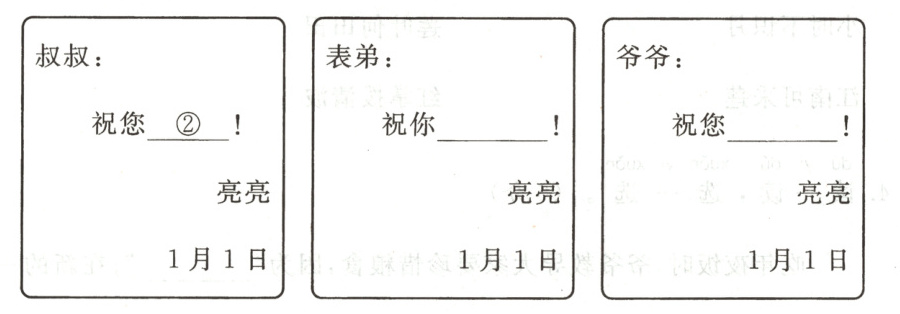 5. 让我们一起给家人做张新年贺卡吧!请你根据提示