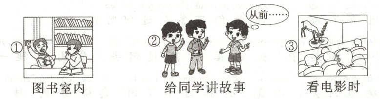 4. 下面的场合中,应该小声说话的是( )和( )。