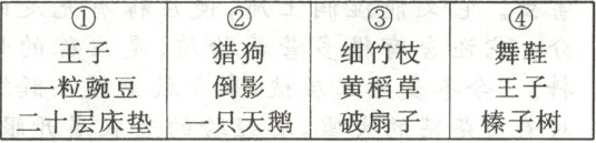 ①王子 ②猎狗 ③细竹枝 ④舞鞋