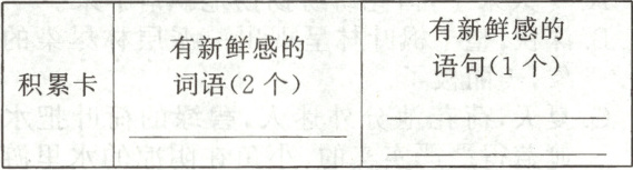 (4)文中有许多有新鲜感的词句,请你按要求摘抄在积累卡上。