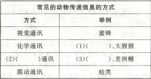 (4)【材料一】和【材料二】主要告诉我们动物传递信息的有关知识。 ()