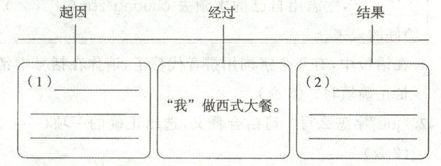 ①星期天的下午,爸爸妈妈外出做客。我偷偷地跑下楼,买来面包、黄油、果酱……心想:哈哈!今天给你们一个意外的惊喜,来一顿西式大餐。菜式有:拌蔬菜沙拉、炸猪排、红菜汤……