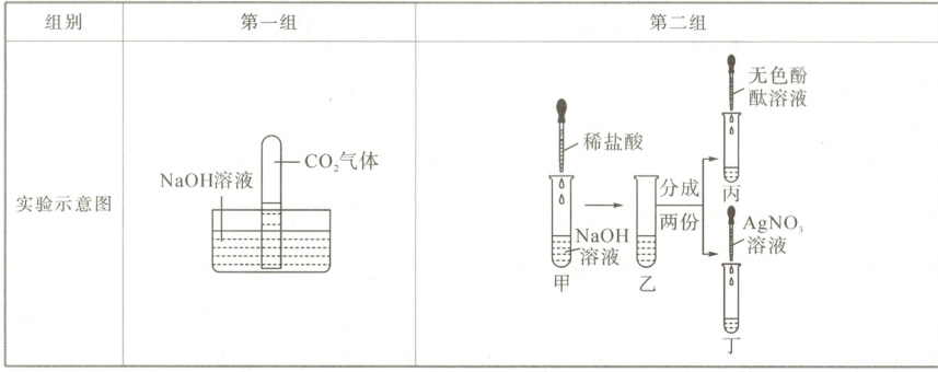 作用的对比实验才能得出这一结论。(3)第二组的小明同学向丙中滴入无色酚酞溶液后,观察到溶液颜色