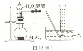 实验室用$15\%$的$\mathrm{H_2O_2}$溶液在$\mathrm{MnO_2}$的催化作用下制取氧气,实验前需在烧瓶中加入一定量的水,$\mathrm{H_2O_2}$溶液浓度是否会影响氧气产生的速率?小科利用图12-98-1装置进行探究。