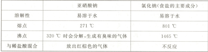 (1)根据题中信息可知亚硝酸钠是白色固体、有咸味、易溶于水、熔点是271℃,这些都是物质不需要发生化学变化就表现出的物理性质。