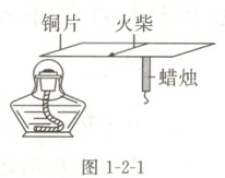 02 用图1-2-1装置进行实验(夹持仪器略去)。点燃酒精灯加热铜片一段时间后,蜡烛熔化、掉落,之后火柴燃烧。