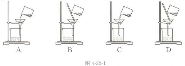 ),使一种物质可以通过,而另一种物质则被阻挡下来,从而达到分离的目的。②图4-20-3是操作1的示意图,图中玻璃棒的作用是