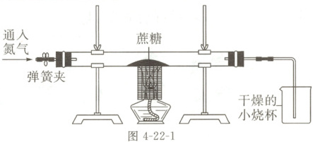 。方案二:小刚用如图4 - 22 - 1所示装置进行实验,实验开始先通入一会儿氮气,然后关闭弹簧夹,点燃酒精灯给蔗糖加强热。