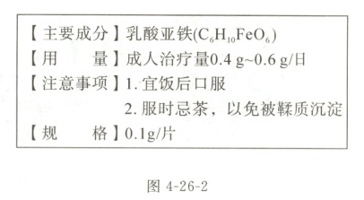 02 乳酸亚铁片可用于治疗缺铁性贫血,如图4-26-2为某乳酸亚铁片说明书上的部分文字。请仔细阅读后回答: